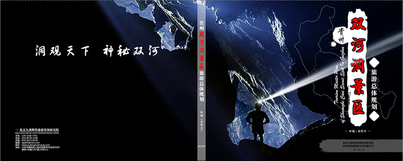 双河洞景区是我做过最放肆的封面。运用了原版的摄影作品作为封面底板背景。刚好与‘洞观天下,神秘双河’的黑色融合,看起来特别神秘。