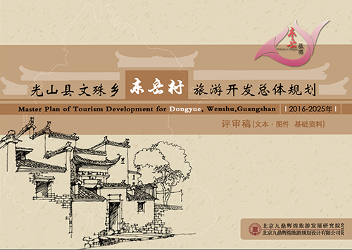 东岳村以民俗为主,建筑风格很有特色,近似于徽派建筑。豫南地区是一个过渡带,所以图片都是从当地提炼出的一些素材,上面的白线是他的规划范围,整体还是按照三分之一排版。