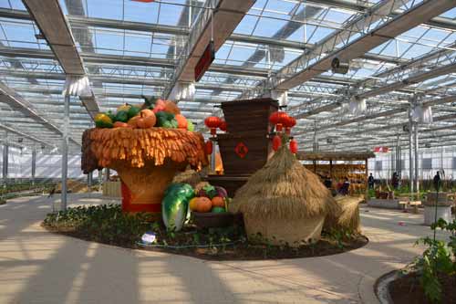 本次考察的第一站“南和县农业嘉年华“位于河北邢台市南和县贾宋镇,是河北省举办的第一个大型农业盛会。该嘉年华由中国农业大学与南和县政府合作建成,规划面积446亩,设施面积达5万余平方米,预计总投资约3亿元。该项目按照“两区、一街、一广场”的模式进行筹办,两区包括创意风情馆区和配套服务区,其中创意风情馆区分为蔬朗星空、畿南粮仓、本草华堂、童话果园、花样年华、同舟共冀六大华丽篇章;配套服务区由入口活动区、后勤管理区、餐饮服务区、停车服务区等区域组成;一街为民俗展览街;一广场为文化主题广场。此次农业嘉年华最核心部分创意风情区的6个主题场馆已完成建设布展并对外开放。