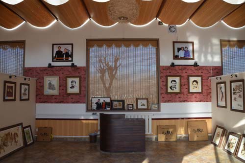本次考察的第二站“粮画小镇“位于馆陶县县城西约3公里处的寿东村,以“粮画”而闻名。春节期间,村内夜景如画,游人如织,好不热闹。该村以土地入股方式吸引粮画企业—海增粮艺公司入驻,在村里建设了粮食画生产基地,有粮食画展厅、加工车间、粮画体验厅、五谷餐厅等一条龙生产、包装、体验设施,采取“公司+农户+基地”的发展模式,由农户制作粮食画,公司统一包装出售。现在村中从事粮画创作的达到80余户,户均增收1.5万元,成为村民增收的特色产业。村内有栩栩如生的粮画胡同,地道韵味的农家院,典雅精致的咖啡屋,粮画姑娘,电影院,还有艺术范儿的葫芦画展厅、麦秸画展厅、蛋雕工作室等,传统与时尚交融,乡村风情与城市品质完美结合,使之一跃成为2015年“中国最美十大乡村”之一。