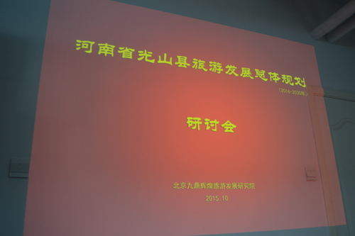20151016号,光山县县政府党组成员、大苏山国家森林公园建设指挥部副指挥长胡崇春、光山县文物旅游局局长周永珩莅临北京九鼎辉煌旅游发展研究院(以下简称“九鼎辉煌”)参加《河南省光山县旅游发展总体规划(2016-2030年)》(以下简称“规划”)初稿研讨。出席本次研讨会的专家有北京第二外国语学院旅游发展研究院副院长王富德教授;九鼎辉煌朱万峰院长、时玉亮副院长和规划组的成员都参加了本次研讨会。另外研讨会还讨论了《光山县东岳村旅游业建设发展规划(2015-2020年)》(以下简称“东岳村”)。研讨会由朱万峰院长主持进行。